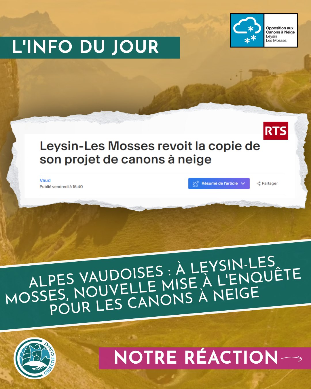 L’info du jour RTS – Vaud : Leysin–Les Mosses revoit la copie de son projet de canons à neige / Alpes vaudoises : à Leysin–Les Mosses, nouvelle mise à l’enquête …
