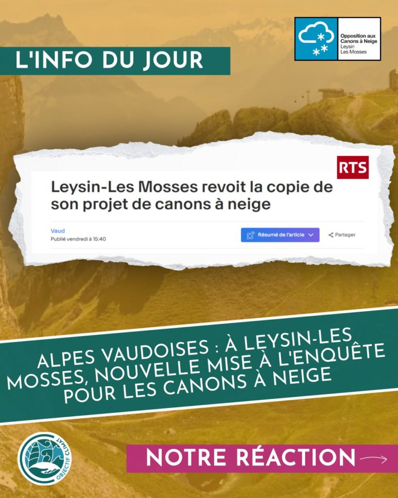 RTS – Vaud : Leysin–Les Mosses revoit la copie de son projet de canons à neige / Alpes vaudoises : à Leysin–Les Mosses, nouvelle mise à l’enquête pour les canons à neige